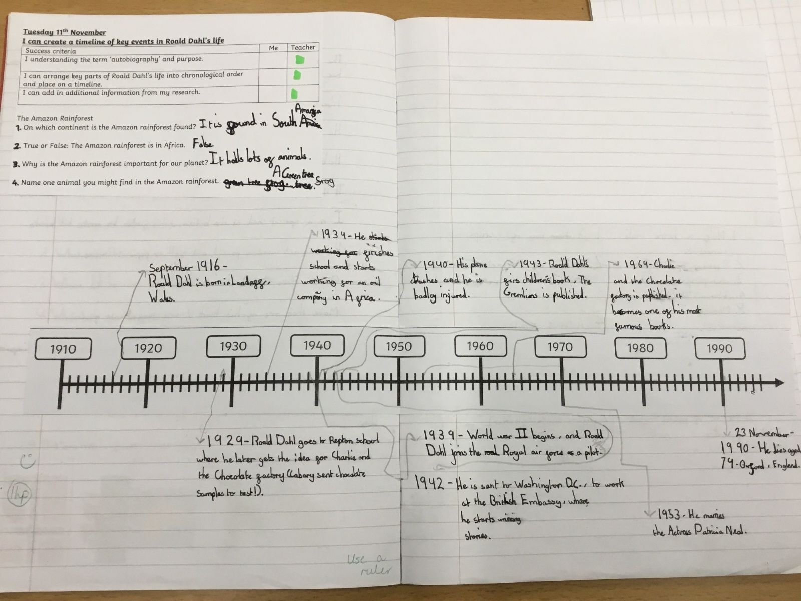 Year 4 have thoroughly enjoyed learning about how children's lives have changed. This topic had fantastic links with their English as they focused on the life of Rolad Dahl, which led to some fantastic cross-curricular writing. The children also had the wonderful opportunity to visit the Rolad Dahl Museum, which offered the children the fantastic opportunity to apply and reinforce their learning.
